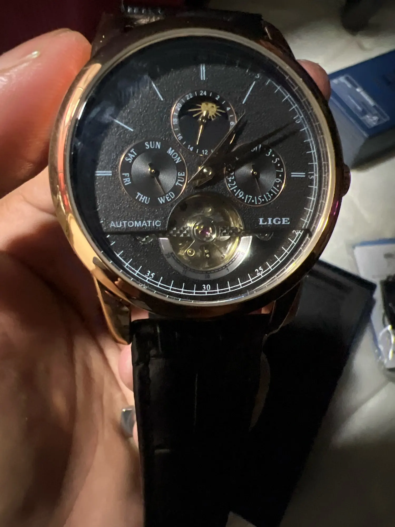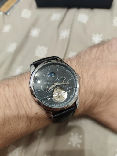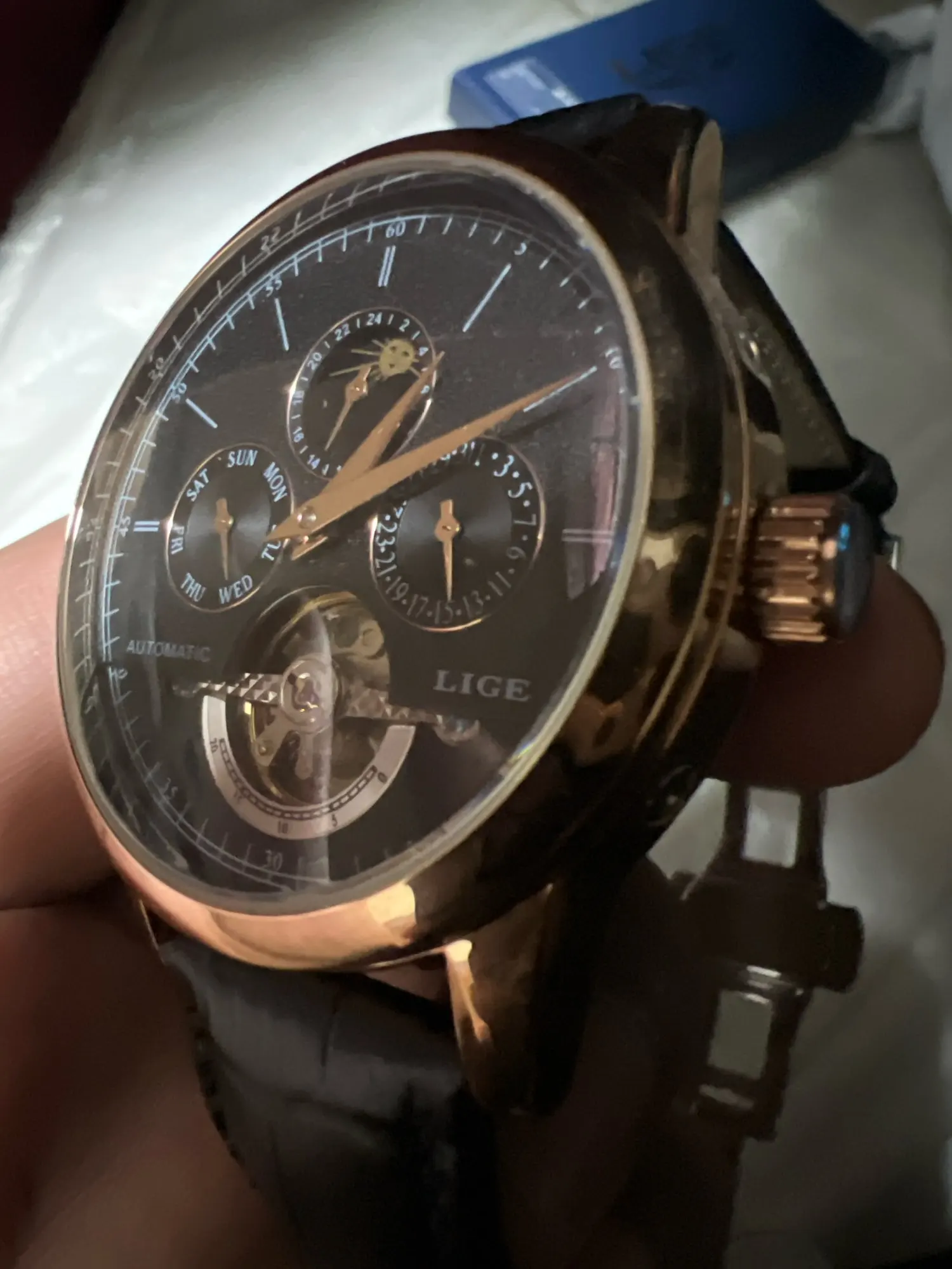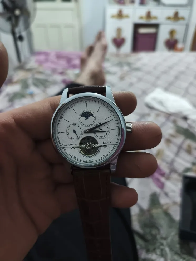 The LIGE Lunar Classic Automatic blends craftsmanship with functionality, making it the perfect companion for modern men. Designed with a durable stainless-steel case and premium leather strap, it features a moon phase display, full calendar, chronograph function, and week display. With automatic self-wind movement, this watch is as practical as it is stylish.