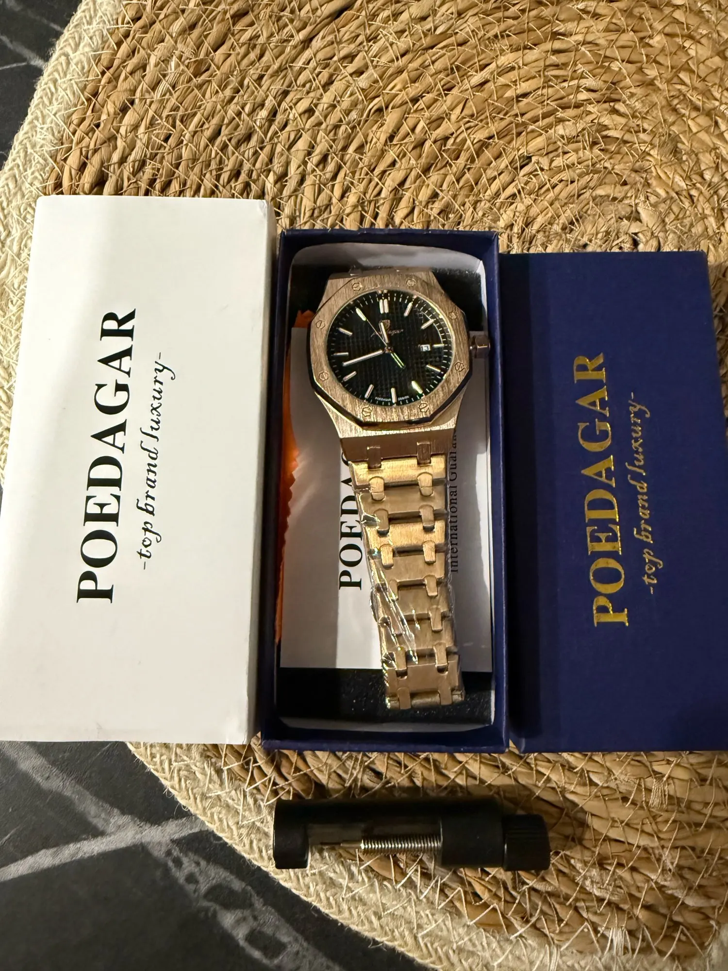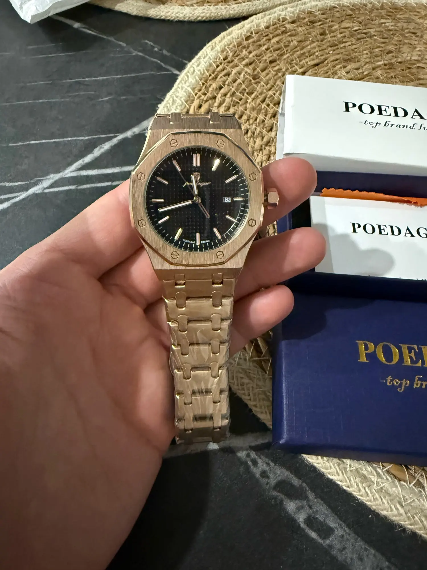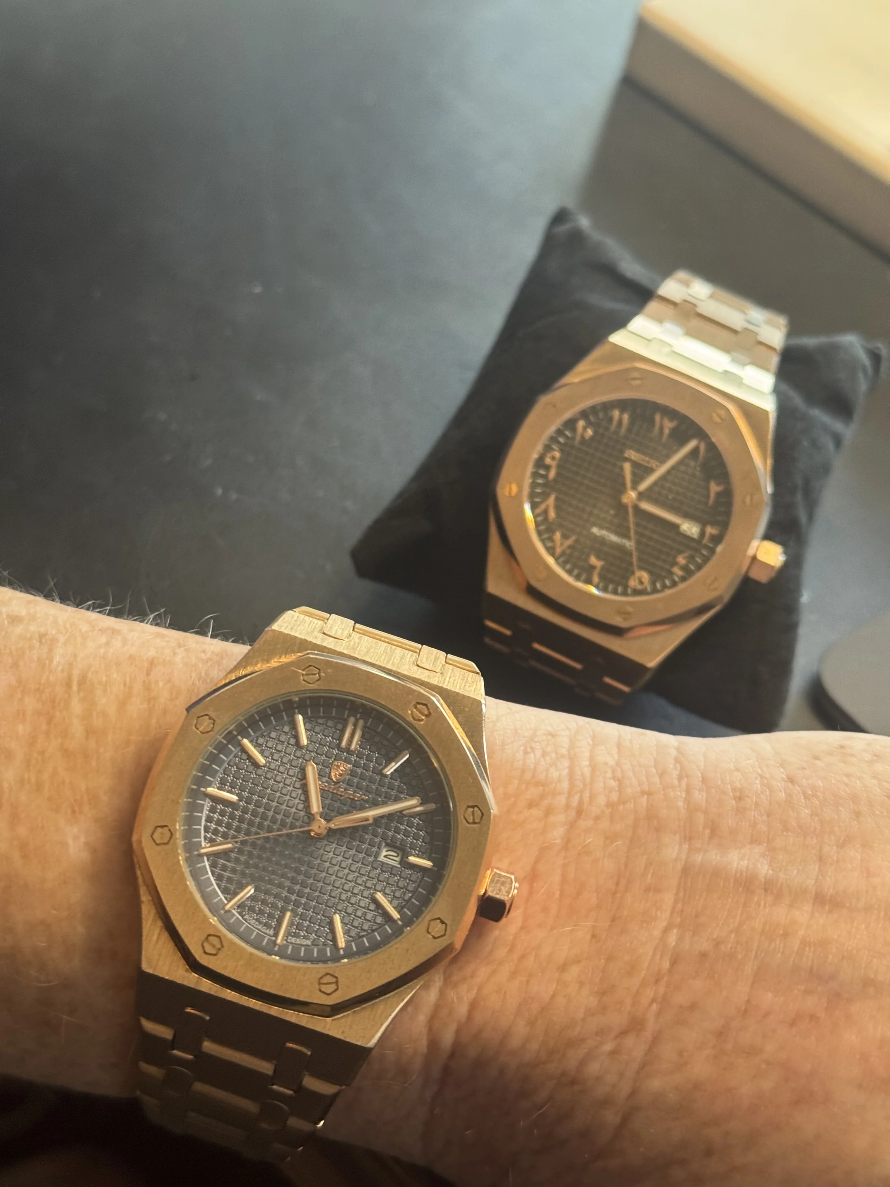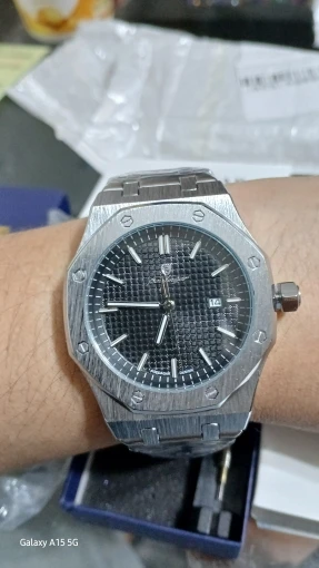 This is not a great watch. It's cheap. But the metal feels good; it feels a bit on the lighter side compared to an ap or the mod i have, for that matter. It looks good, and the quartz movement keeps time well.
